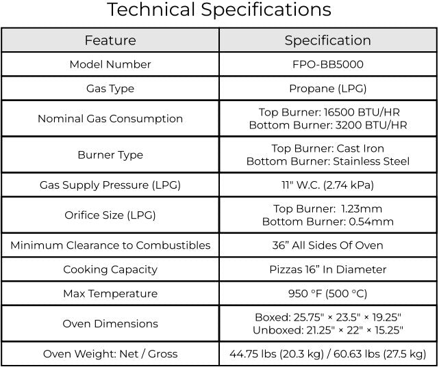 Unlike other home pizza ovens that all have single-burner models, the Festa Oven uses a dual-burner system with heat above and below the stone, so the top of your pizza doesn't burn before the bottom is finished.